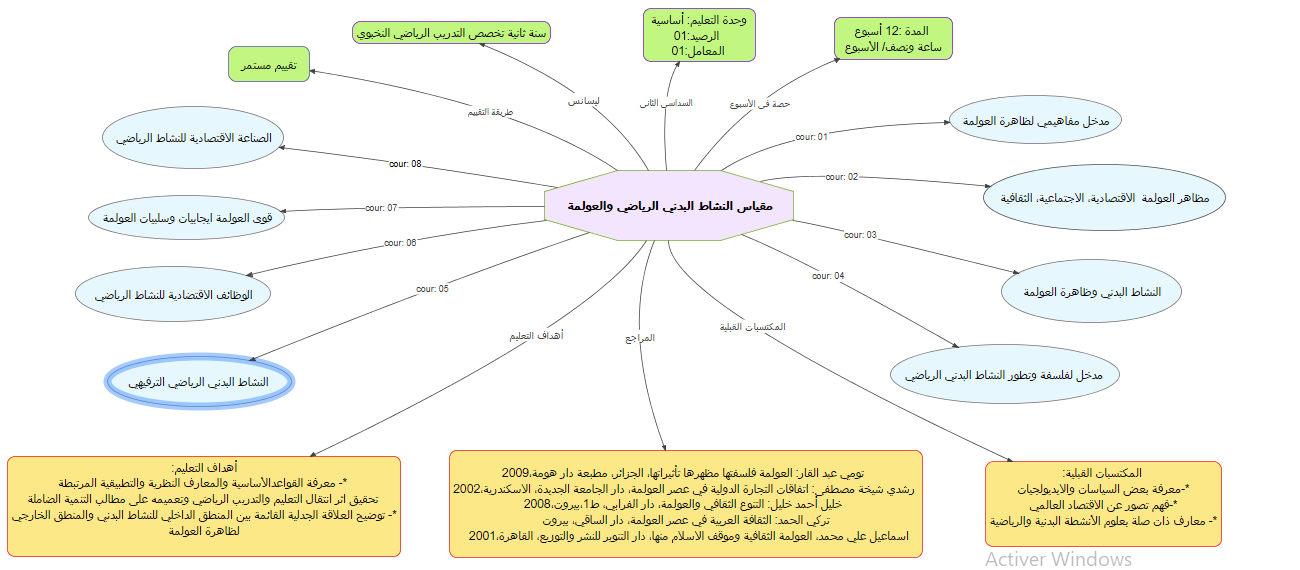 - معارف ذات الصلة بعلوم الأنشطة الرياضية وأهدافها.